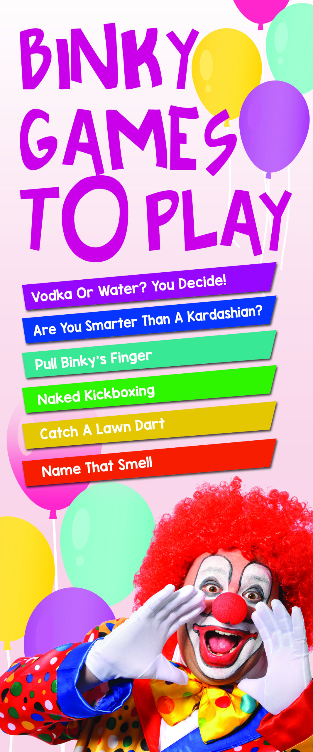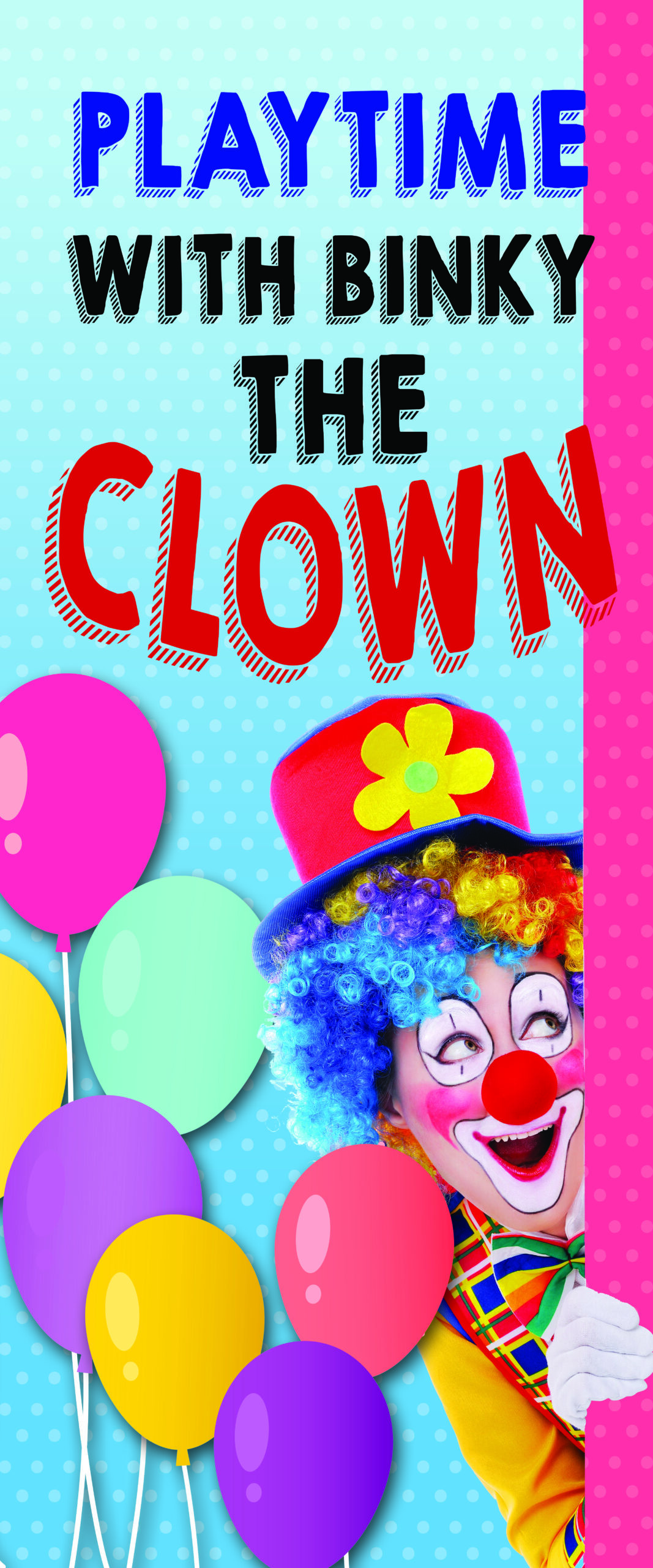 I sometimes put this graphic on my table to enhance the idea that Binky the Clown was the one who was supposed to do the show.
